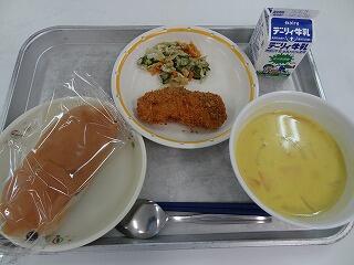 麦ご飯 牛乳 魚の唐揚げおろしソース かぼちゃのみそ汁