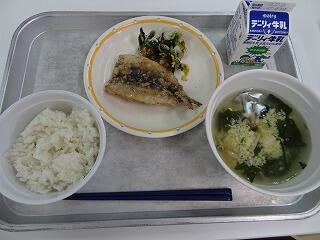 麦ごはん 牛乳 いわしの竜田揚げ グリーンサラダ かきたま汁