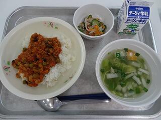 ドライカレー 牛乳 ハムのマリネサラダ 白菜スープ