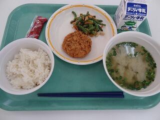 麦ご飯 牛乳 メンチカツ いんげんのごま和え じゃがいものみそ汁
