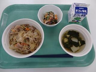 みそ豚丼 牛乳 海藻サラダ 豆腐のすまし汁