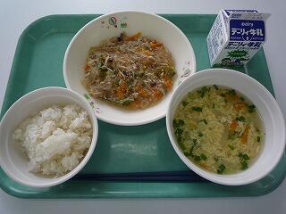 麦ご飯 マーボー春雨 にら玉スープ 牛乳