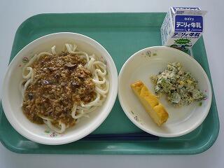 ジャージャー麺 厚焼き卵 ごまマヨサラダ 牛乳
