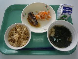 五目ご飯 いわし生姜煮 紅白なます 豆腐のすまし汁 牛乳