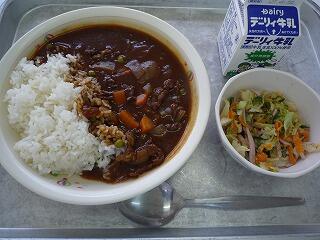 ハヤシライス コールスローサラダ 牛乳