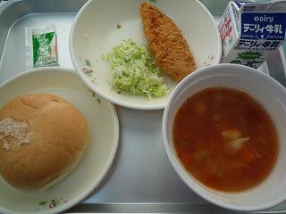麦ご飯 豚と野菜のオイスター炒め ワンタンスープ 牛乳