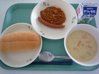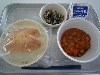 マヨネーズパン ポークビーンズ 大根サラダ 牛乳