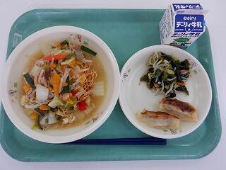 皿うどん 焼き餃子 ナムルサラダ 牛乳