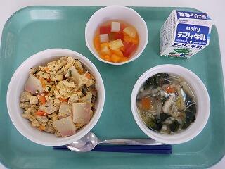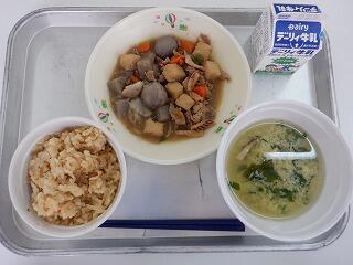 鶏ごぼうご飯 三州煮 かき玉汁 牛乳