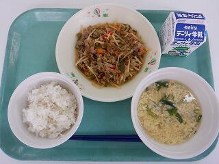 麦ご飯 チンジャオロースー 中華スープ 牛乳