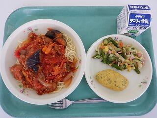 なすのミートソーススパゲティ ほうれん草オムレツ
