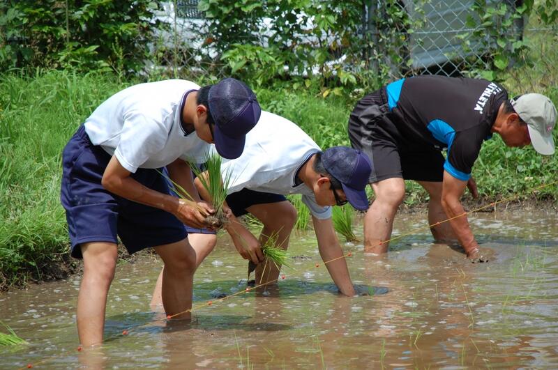〈3年生 個別実習の様子・・・飲食店〉 〈1年生 校内農業班・・・田植え〉