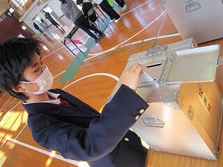 2月7日、次年度に向けた「児童生徒会役員選挙」が行われました。1年生4名、2年生4名の計8名が立候補し、ポスター掲示や街頭演説等の選挙活動を2週間にわたり繰り広げました。そして、7日の立ち会い演説会を受け、選挙管理委員立ち会いの下、投票が行われました。卒業後の実際の選挙を想定し、宮崎市の選挙管理委員会から投票箱と記載台お借りしました。また、期日前投票日も3日間設けられました。