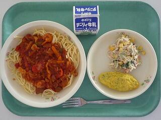 スパゲティトマトソース ほうれん草オムレツ