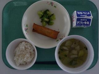 麦ご飯 春巻き ゆでブロッコリー 中華団子スープ 牛乳