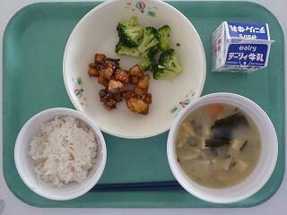 麦ご飯 なすのみそ炒め 汁ビーフン 牛乳