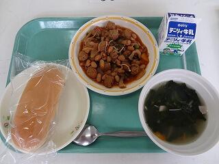 ミルクパン ミートボールのトマト煮 野菜スープ 牛乳