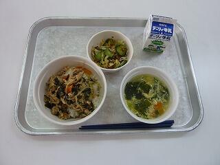 ビビンバ丼 牛乳 おかか和え わかめスープ