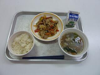 麦ご飯 牛乳 豚と野菜の黒酢炒め 春雨スープ