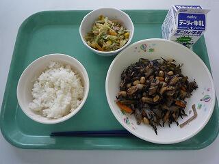 麦ご飯 大豆の磯煮 ごまじゃこサラダ 牛乳