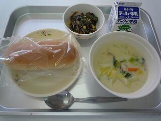 黒糖パン クリームシチュー ひじきサラダ 牛乳