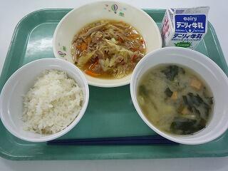 麦ご飯 豚の生姜炒め さつまいものみそ汁 牛乳