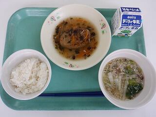 麦ご飯 和風ハンバーグ 里芋のすり流し汁