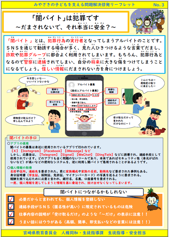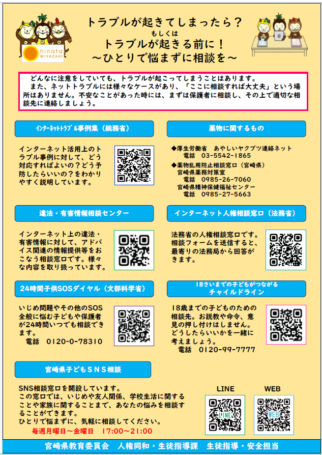 「みやざきの子どもを支える問題解決支援事業」の一環として啓発リーフレットが届きましたのでご紹介いたします。