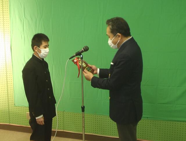 終業式後、表彰と生徒会による赤い羽根共同募金のお礼のコーナーがあり、