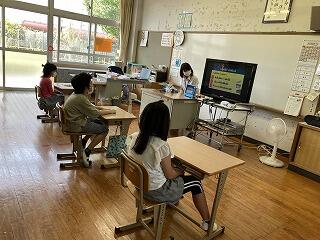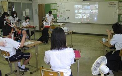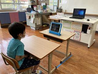 感染症対策として、本部と各教室をZoomでつないで行われました。