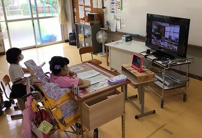 感染症対策として、本部と各教室をZoomでつないで行われました。