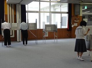 次に、小学3年生以上の皆さんによって、信任、不信任の投票が行われました。