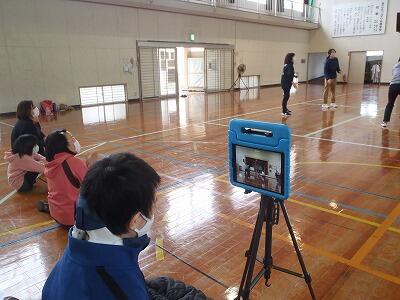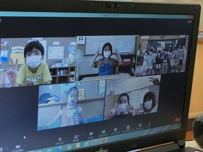各教室や家庭と繋ぎ、オンラインで行いました。