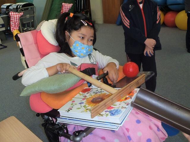 ボールを使って簡単な動きをする活動では、歓声が上がっていました。