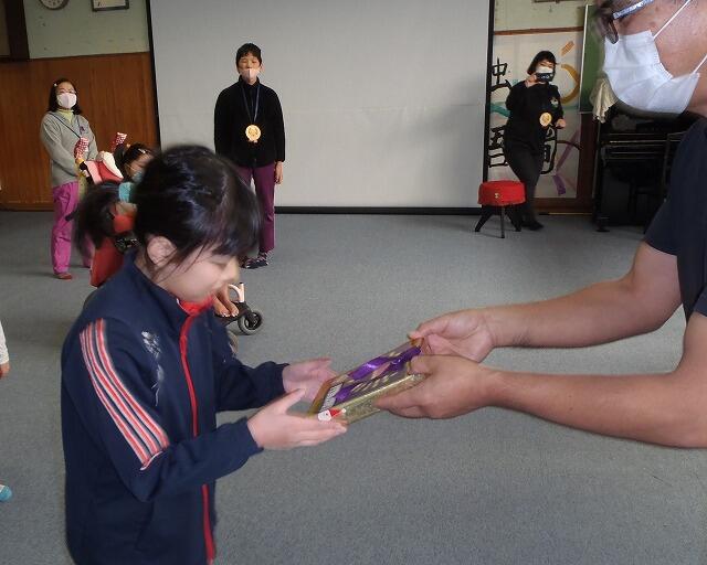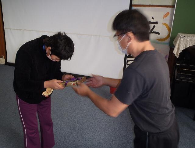修了式後には、今年度退職を迎えられる校長先生への寄せ書きを、校長先生に渡しに行きました!