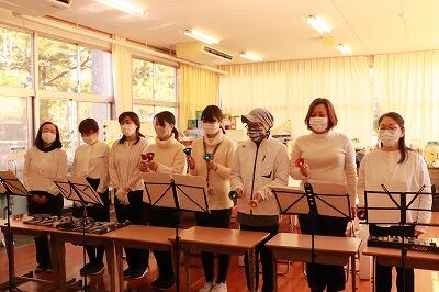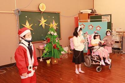12月17日(金)に、幼小学部のお楽しみ会がありました。普段、音楽科の学習で取り組んでいる歌や楽器の演奏、手遊びなどを発表しました。