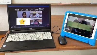 各教室や家庭と繋ぎ、オンラインで行いました。