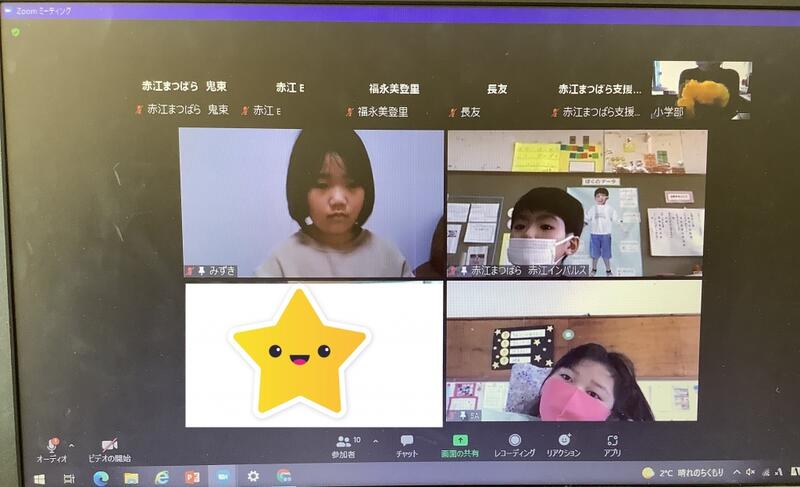 宮崎市立古城小学校の4年生と本校の幼稚部、小学部4年生までの児童が交流学習を行いました。感染症予防のため、昨年に引き続き、オンラインでの交流学習でした。 自己紹介や、青鬼ゲーム、なぞなぞなどを行いました!楽しく交流することができました。