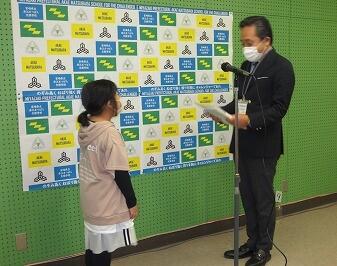 修了式後には、今年度退職を迎えられる校長先生への寄せ書きを、校長先生に渡しに行きました!