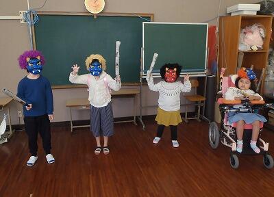 そんな、節分の日の昼休み、小学部にかわいい鬼たちがやってきました!