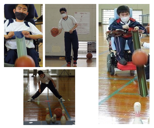 ボールを投げる強さを工夫したり、角度を調整したりして活動に参加しています。