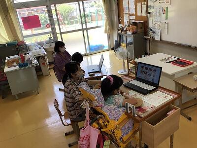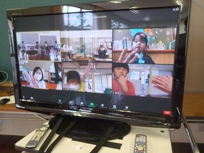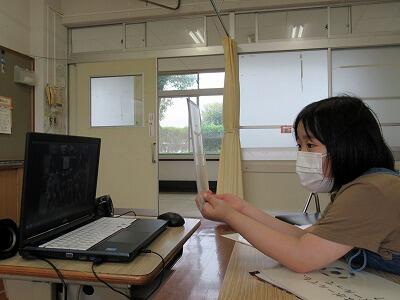 各教室や家庭と繋ぎ、オンラインで行いました。
