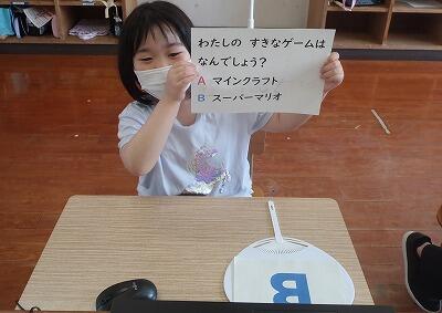 自分の好きな色やキャラクター、ゲームなどに関するクイズを出し合いました。