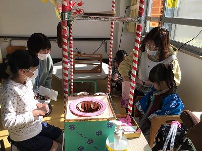 秋祭りでは、「けんつり」「おいもや」「しゃてき」のコーナーがありました。
