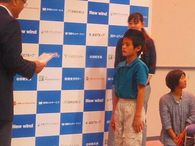 本校から藤野瑞姫さん、外山涼々海さん、長友巧彌さんの3名が特別賞に選ばれました。3人は、受賞式の席上で一人ずつ賞状と名前入りのバス停のパネルをもらいました。おめでとうございます。