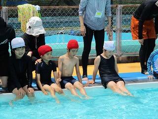 また、4年生は初めて大プールに入りました。大プールの深さに驚きながらも、