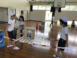画像は4年生の活動の様子です。4年生は体育館でコーナーごとにゲームを行いました。