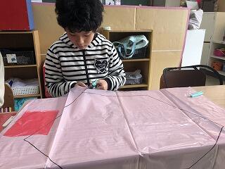 3学期が始まり、小学部では、「お正月遊び」として、凧揚げやすごろく、カルタなどの活動を行いました。凧揚げでは、凧を作るところから自分たちで行い、真剣に型を取ったり、思い思いの絵を描いたりしていました。すごろくでは、マスの内容を自分たちで考え、サイコロを振ってそのマスに止まった人は、「みんなと握手をする」「好きな食べ物を発表する」など、オリジナルのすごろく遊びを楽しみました。