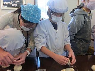 店内のおしゃれで落ち着いた雰囲気に、みんなわくわくした気持ちになりました。階段を上がり、2階の長くて広いテーブルでパンを作りました。
