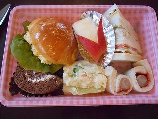 お昼はロールパンやサンドイッチ、りんご、ケーキが入ったおいしいランチボックスとスープでした。ゆったりとした部屋で食事をしました。